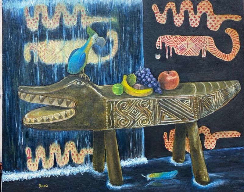 1.構成と造形の力学 • 中央のワニ型彫刻は、ただの動物ではなく「器」や「祭壇」のような存在感を持っています。幾何学的な彫り込みが、文化的記憶や儀式性を想起させ、単なる生物を超えた意味を帯びています。 • その背に載る果 […]